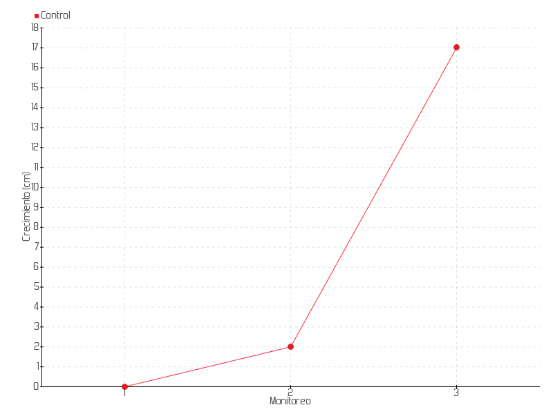 Monitoreo | Fecha | Altura | Crecimiento | Tasa de crecimiento | Crecimiento total |