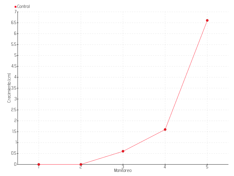 5 | 30/04/2025 | 21.00 cm | 5.00 cm | 0.0192 cm/día | 6.60 cm |
