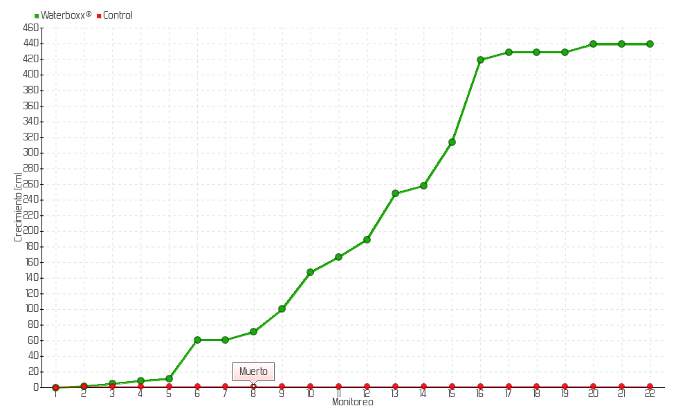 | 8 | 06/03/2015 | 82.00 cm | 10.00 cm | 0.3571 cm/día | 71.00 cm |