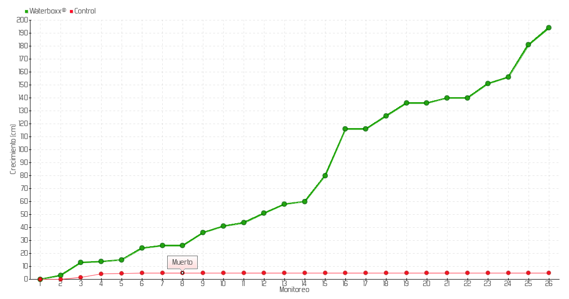| Monitoreo | Fecha | Altura | Crecimiento | Tasa de crecimiento | Crecimiento total |