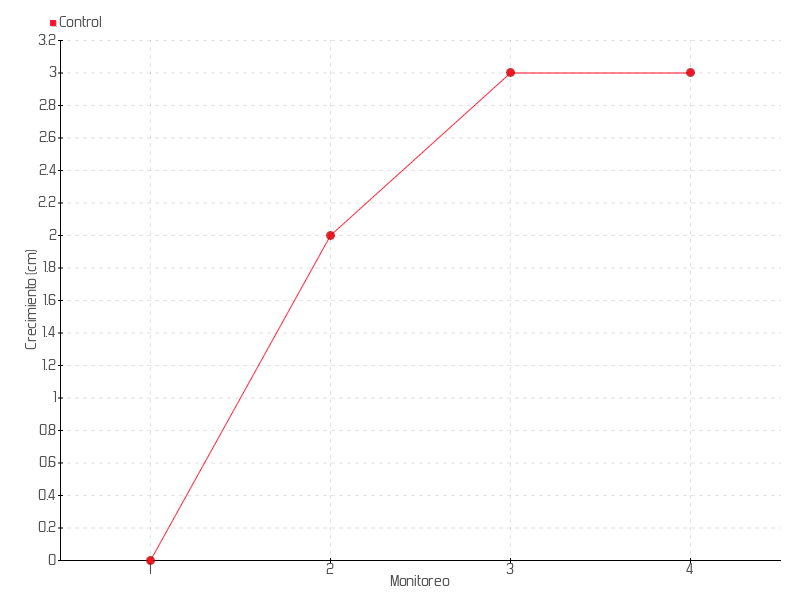 | Monitoreo | Fecha | Altura | Crecimiento | Tasa de crecimiento | Crecimiento total |