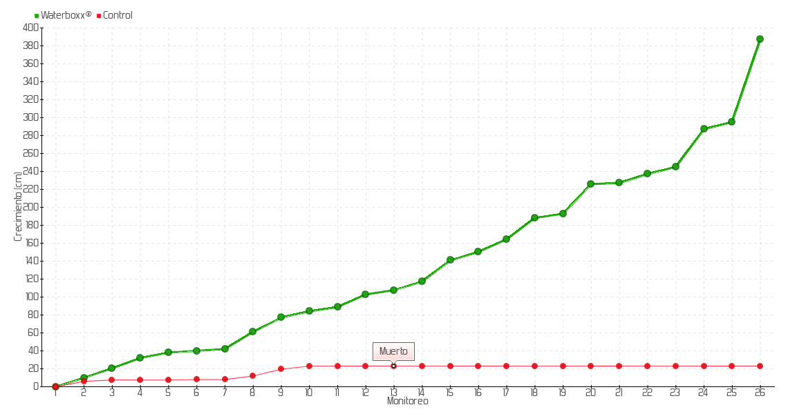 | 10 | 04/06/2015 | 97.00 cm | 7.00 cm | 0.4667 cm/día | 84.00 cm |