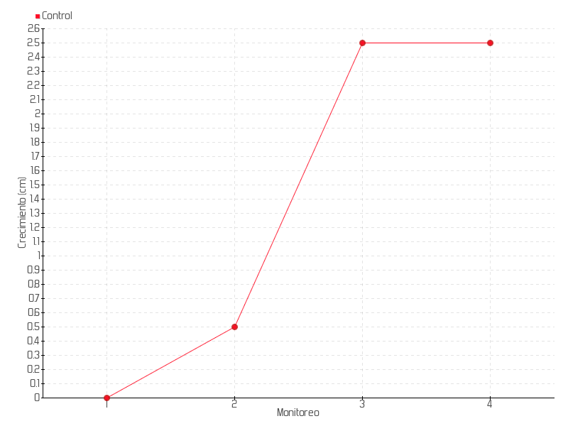 | Monitoreo | Fecha | Altura | Crecimiento | Tasa de crecimiento | Crecimiento total |