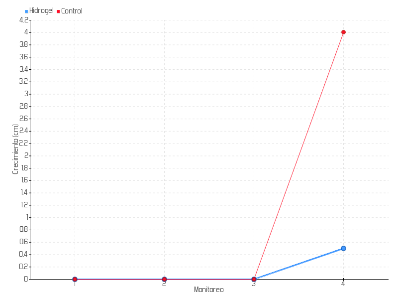 | Monitoreo | Fecha | Altura | Crecimiento | Tasa de crecimiento | Crecimiento total |