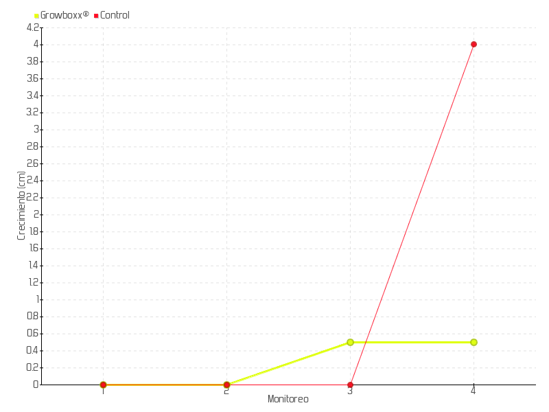 Monitoreo | Fecha | Altura | Crecimiento | Tasa de crecimiento | Crecimiento total |