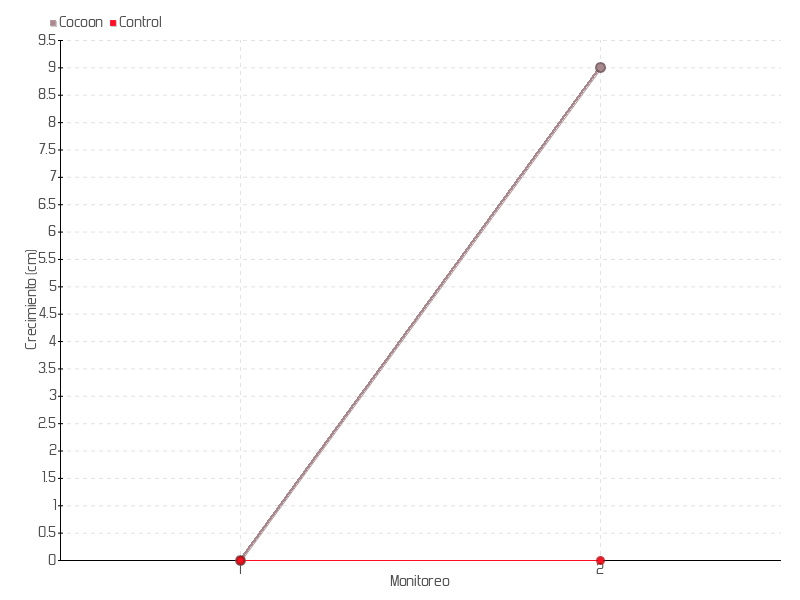 | Monitoreo | Fecha | Altura | Crecimiento | Tasa de crecimiento | Crecimiento total |