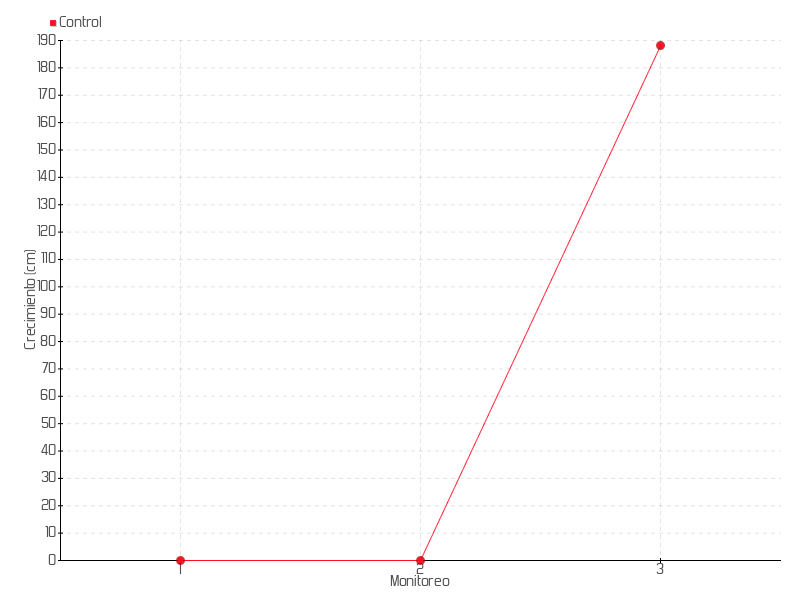 | Monitoreo | Fecha | Altura | Crecimiento | Tasa de crecimiento | Crecimiento total |