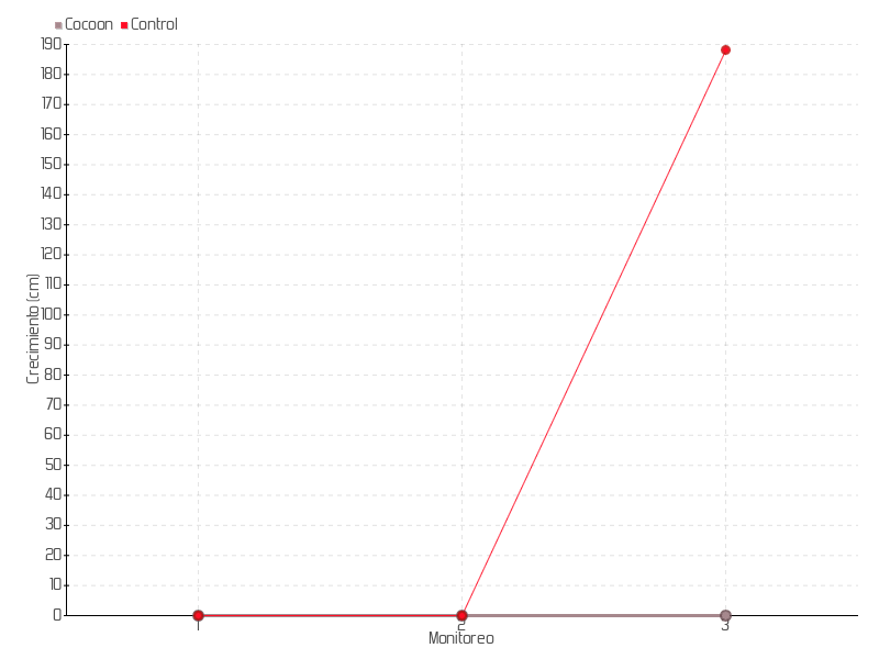 | Monitoreo | Fecha | Altura | Crecimiento | Tasa de crecimiento | Crecimiento total |