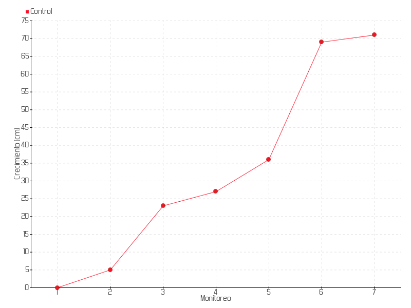 Monitoreo | Fecha | Altura | Crecimiento | Tasa de crecimiento | Crecimiento total |