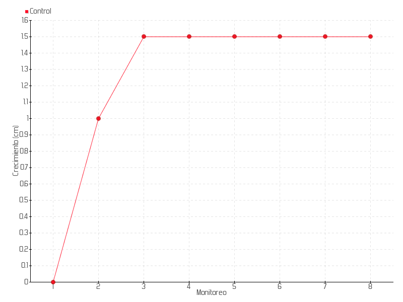 | 2 | 17/09/2014 | 8.00 cm | 1.00 cm | 0.0714 cm/día | 1.00 cm |