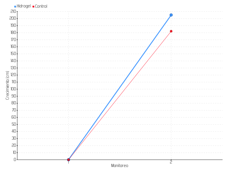 | Monitoreo | Fecha | Altura | Crecimiento | Tasa de crecimiento | Crecimiento total |