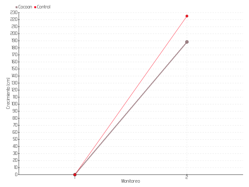 | Monitoreo | Fecha | Altura | Crecimiento | Tasa de crecimiento | Crecimiento total |
