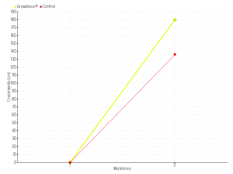 | Monitoreo | Fecha | Altura | Crecimiento | Tasa de crecimiento | Crecimiento total |