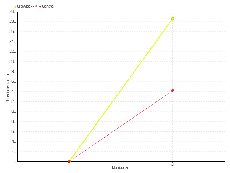 | Monitoreo | Fecha | Altura | Crecimiento | Tasa de crecimiento | Crecimiento total |