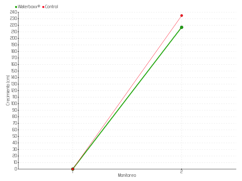 | Monitoreo | Fecha | Altura | Crecimiento | Tasa de crecimiento | Crecimiento total |