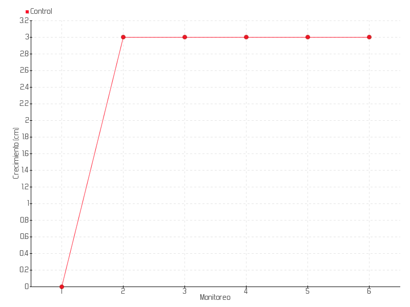 | 2 | 26/11/2014 | 13.00 cm | 3.00 cm | 0.2143 cm/día | 3.00 cm |