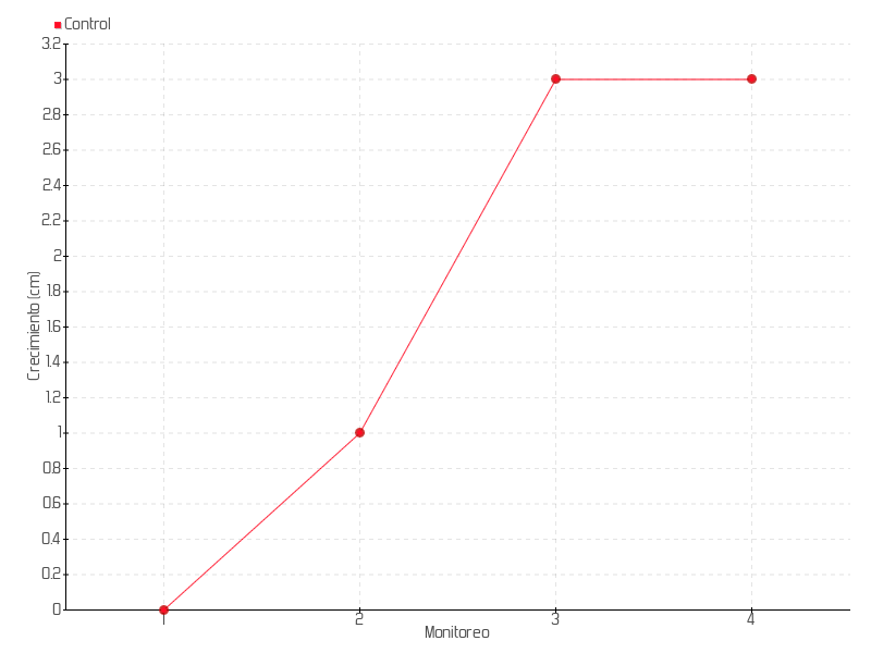 | Monitoreo | Fecha | Altura | Crecimiento | Tasa de crecimiento | Crecimiento total |