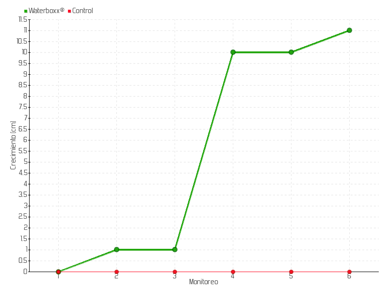 6 | 08/04/2025 | 64.00 cm | 1.00 cm | 0.0033 cm/día | 11.00 cm |