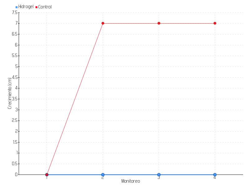 | Monitoreo | Fecha | Altura | Crecimiento | Tasa de crecimiento | Crecimiento total |