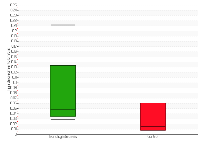 | 2 | 24/04/2023 | 27.00 cm | 7.00 cm | 0.2121 cm/día | 7.00 cm |
