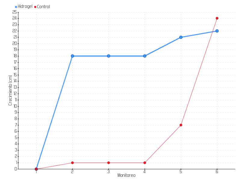 | 2 | 28/04/2023 | 38.00 cm | 18.00 cm | 0.4865 cm/día | 18.00 cm |