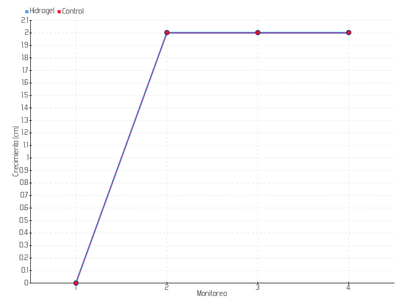 | Monitoreo | Fecha | Altura | Crecimiento | Tasa de crecimiento | Crecimiento total |