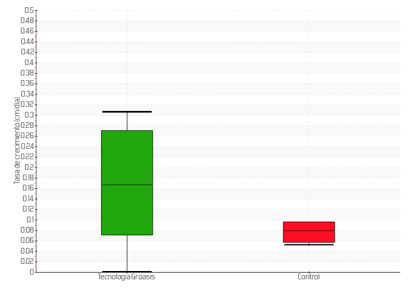 | 5 | 13/05/2015 | 83.00 cm | 7.70 cm | 0.3667 cm/día | 33.00 cm |