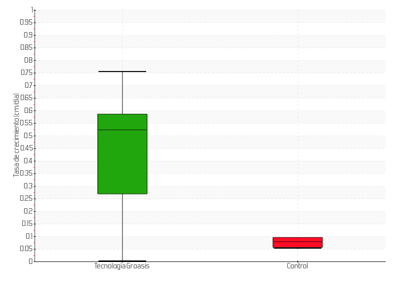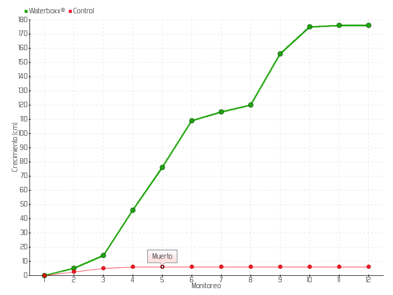 | 5 | 13/05/2015 | 96.00 cm | 30.00 cm | 1.4286 cm/día | 76.00 cm |