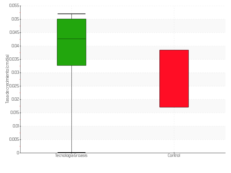 2 | 11/02/2015 | 9.00 cm | 1.00 cm | 0.0385 cm/día | 1.00 cm |