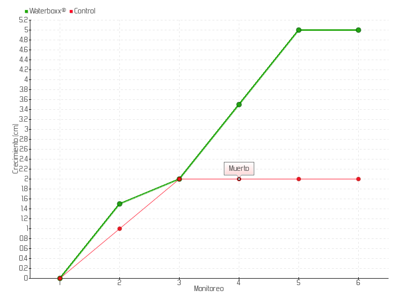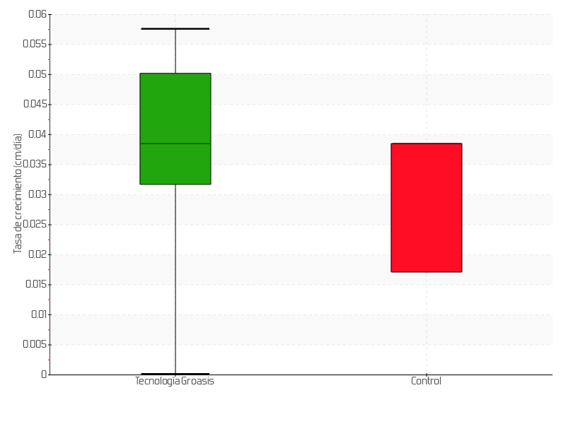 | 5 | 13/05/2015 | 11.00 cm | 1.50 cm | 0.0714 cm/día | 5.00 cm |