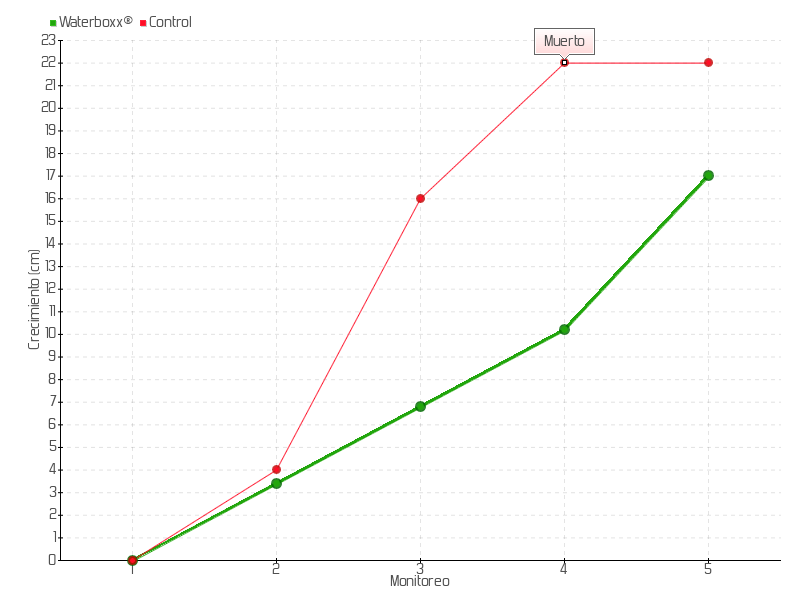 | 5 | 10/06/2015 | 41.00 cm | 6.80 cm | 0.6182 cm/día | 17.00 cm |