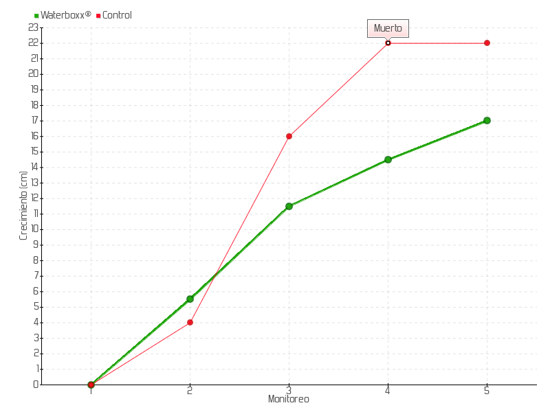 | 5 | 10/06/2015 | 63.50 cm | 2.50 cm | 0.2273 cm/día | 17.00 cm |