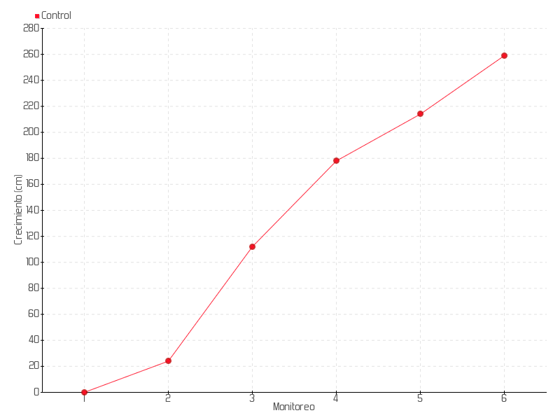 Monitoreo | Fecha | Altura | Crecimiento | Tasa de crecimiento | Crecimiento total |