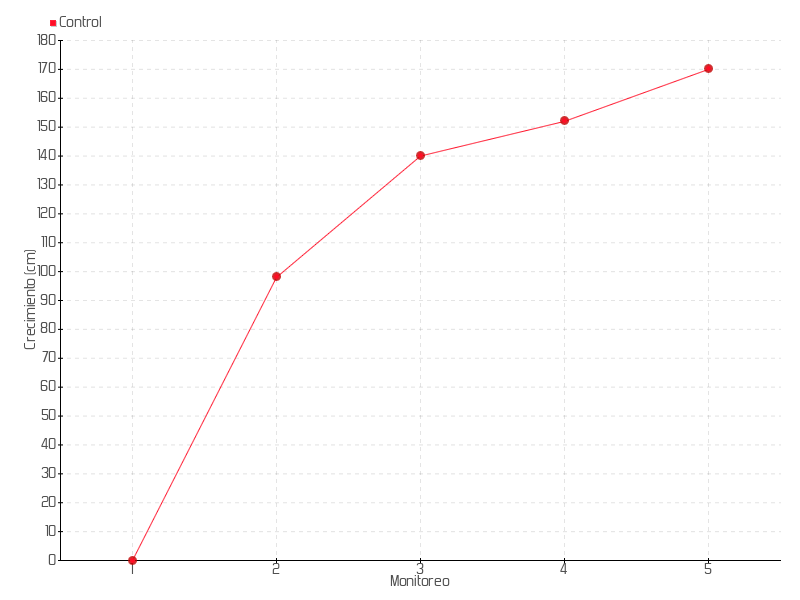 Monitoreo | Fecha | Altura | Crecimiento | Tasa de crecimiento | Crecimiento total |