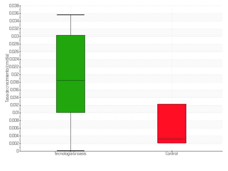 | 5 | 08/05/2015 | 13.00 cm | 1.00 cm | 0.0357 cm/día | 3.00 cm |