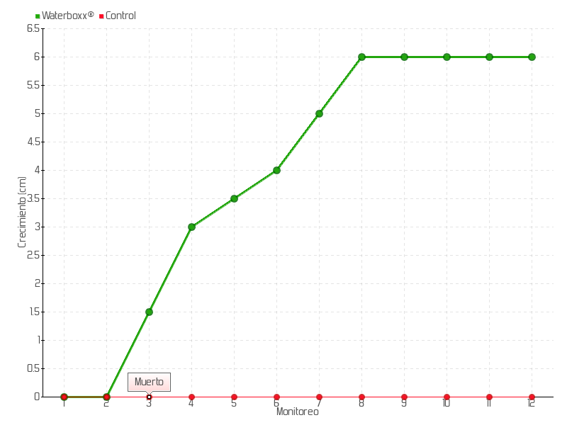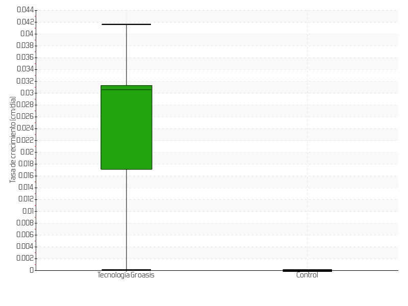 | 8 | 12/08/2015 | 14.00 cm | 1.00 cm | 0.0294 cm/día | 6.00 cm |