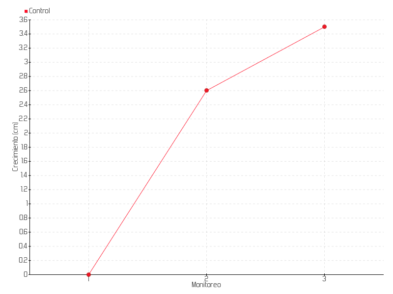 | Monitoreo | Fecha | Altura | Crecimiento | Tasa de crecimiento | Crecimiento total |