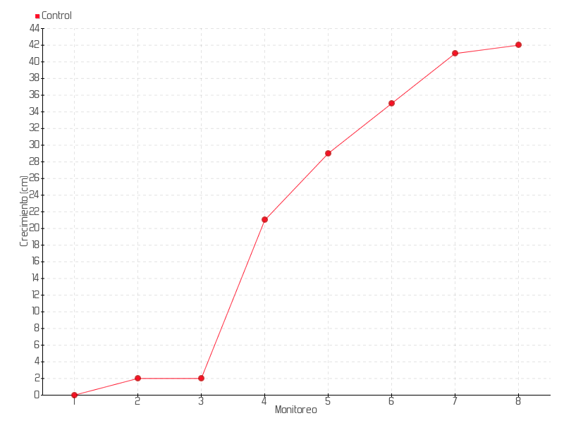 | 5 | 08/05/2015 | 58.00 cm | 8.00 cm | 0.2857 cm/día | 29.00 cm |