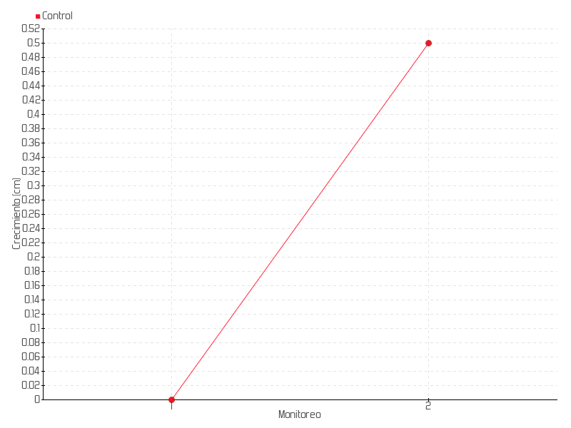 | Monitoreo | Fecha | Altura | Crecimiento | Tasa de crecimiento | Crecimiento total |