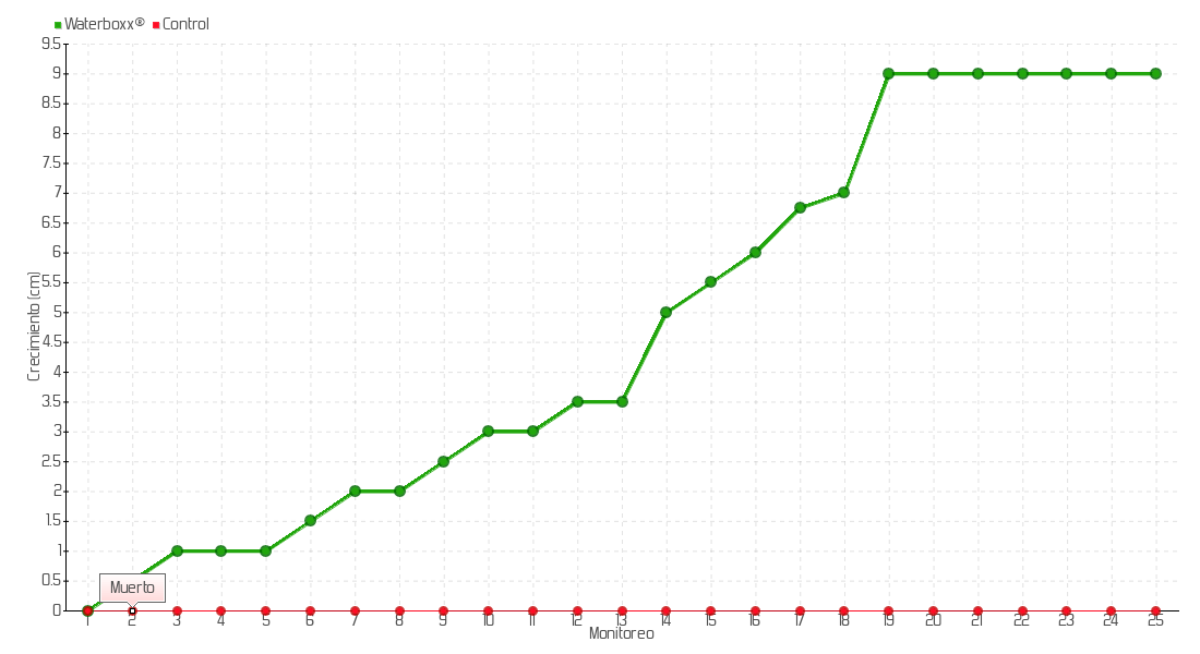 9 | 17/09/2015 | 7.50 cm | 0.50 cm | 0.0227 cm/día | 2.50 cm |