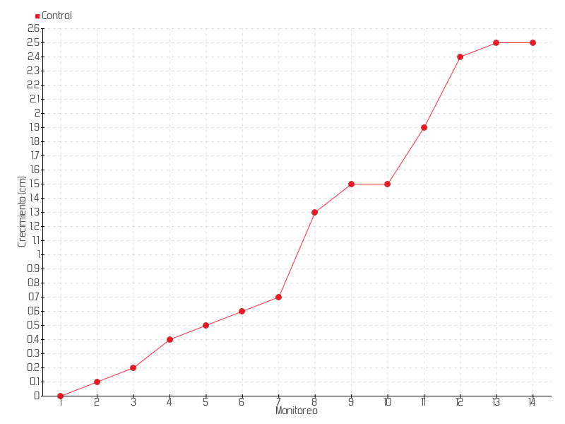 13 | 07/07/2017 | 33.50 cm | 0.10 cm | 0.0006 cm/día | 2.50 cm |