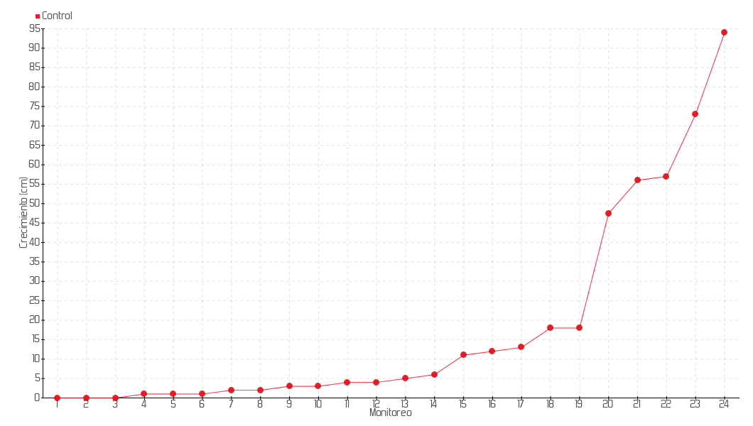 Monitoreo | Fecha | Altura | Crecimiento | Tasa de crecimiento | Crecimiento total |
