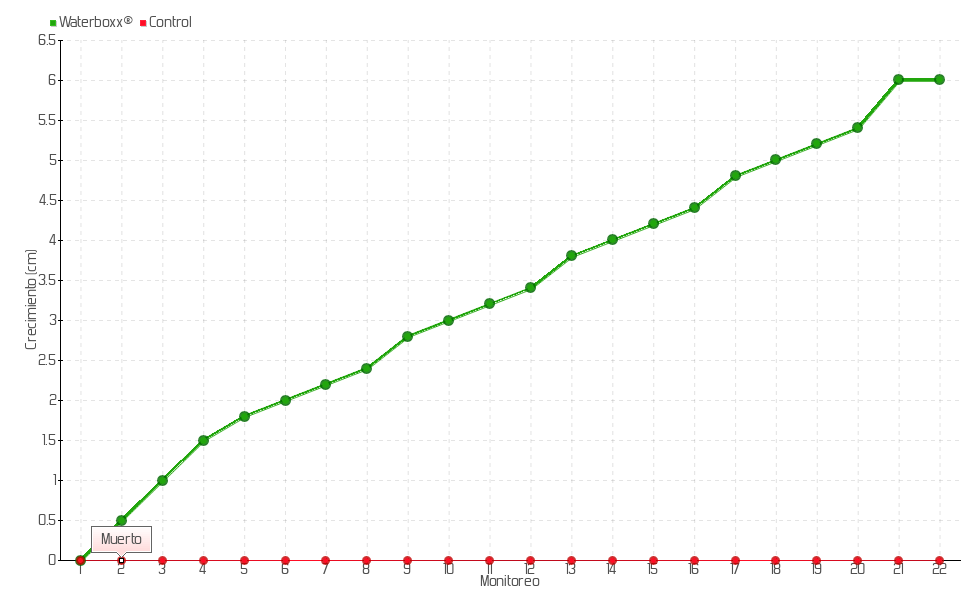 | Monitoreo | Fecha | Altura | Crecimiento | Tasa de crecimiento | Crecimiento total |
