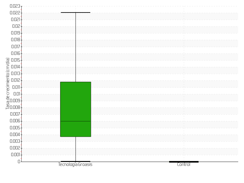 | 5 | 04/06/2015 | 9.80 cm | 0.30 cm | 0.0053 cm/día | 1.80 cm |