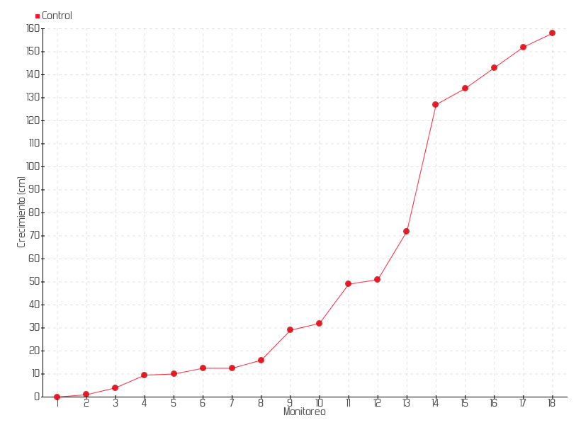18 | 22/01/2014 | 166.00 cm | 6.00 cm | 0.4286 cm/día | 158.00 cm |