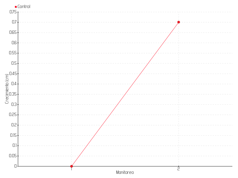 | Monitoreo | Fecha | Altura | Crecimiento | Tasa de crecimiento | Crecimiento total |