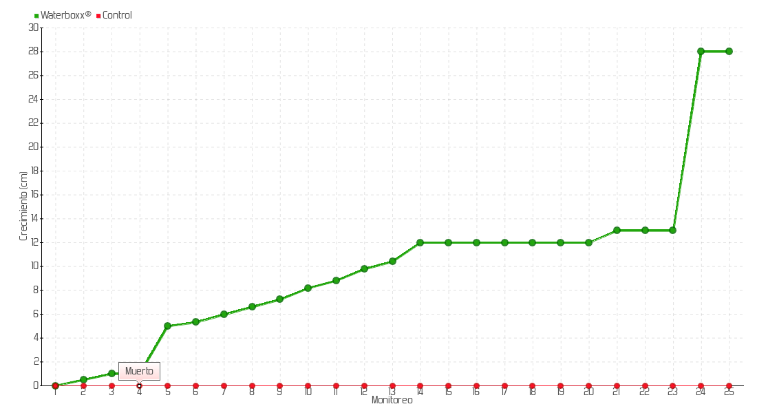 | 5 | 12/08/2015 | 31.00 cm | 4.00 cm | 0.1212 cm/día | 5.00 cm |
