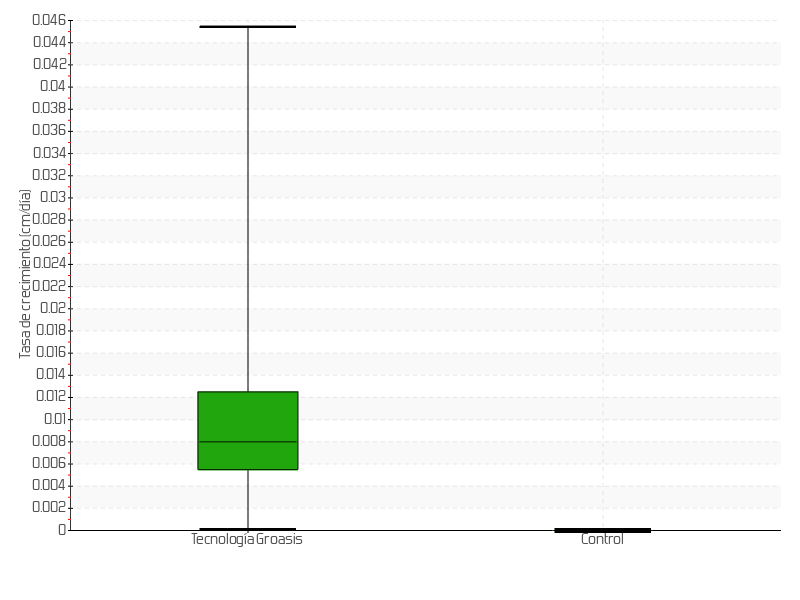 | 12 | 30/01/2017 | 17.00 cm | 1.00 cm | 0.0149 cm/día | 4.50 cm |