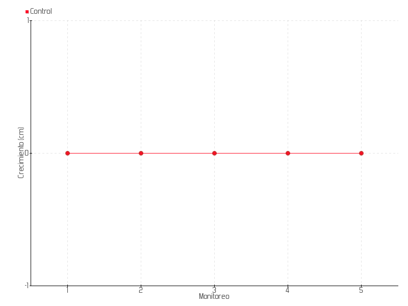 | Monitoreo | Fecha | Altura | Crecimiento | Tasa de crecimiento | Crecimiento total |
