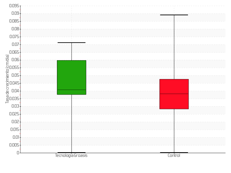 6 | 07/08/2013 | 13.00 cm | 0.50 cm | 0.0357 cm/día | 4.00 cm |